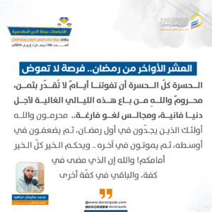 العشر الأواخر من رمضان ودورها في التربية الروحية للإنسان، أ.مهند علي عويضات