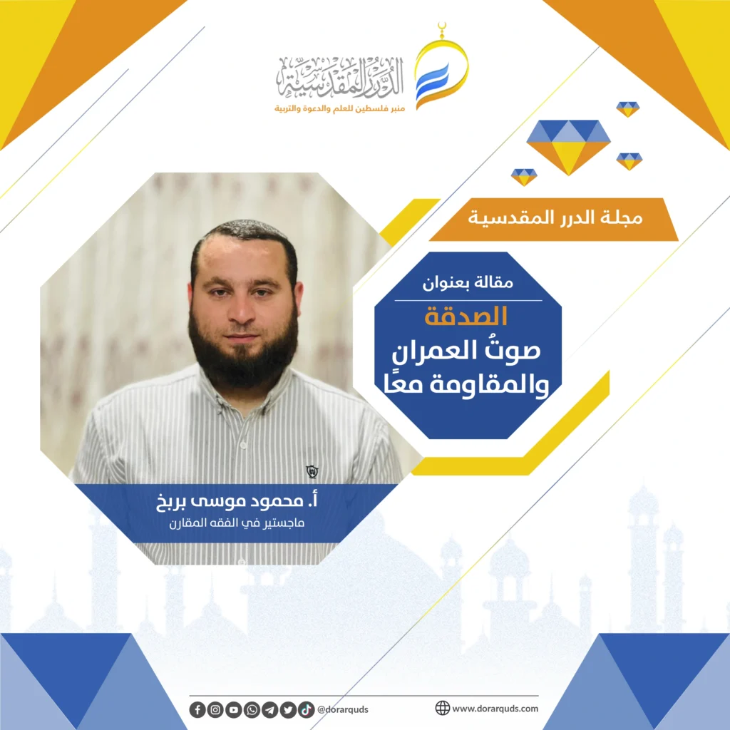 فأعظمُ الصدقةِ اليوم ما كانت سهمًا يَصنعُ عمرانًا، أو يُؤوي نازحًا، أو يخلُفُ مقاومًا في أهله، أو يَشُدُّ ظهرًا، أو يَجبرُ كسرًا، أو يَكفُل يتيمًا، أو يُعينُ أسرة. فهي جبهةٌ تحمي الجبهة، وتصنع مجتمعًا قويًا لا تهزمُه حرب ولا يُضعفُه حصار، وهي إعلانُ بقاءٍ وثبات.