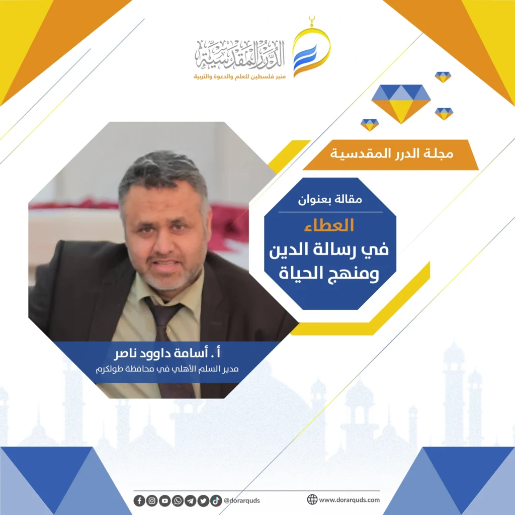 العطاء يكون بلقمة في فم جائع، بكلمة طيبة، بنصيحة نافعة، أو بجَبْرٍ لخاطر. شعبنا الفلسطيني اليوم بحاجة إلى تعزيز عبر مسيرة طويلة من العطاء. أحب الأعمال إلى الله سرور تدخله إلى قلب مسلم، وأحب الناس إلى الله أنفعهم للناس. فطوبى لمن مسح دمعة يتيم، أو جَبَر خاطر نازح، أو أرملة، أو مسكين.
