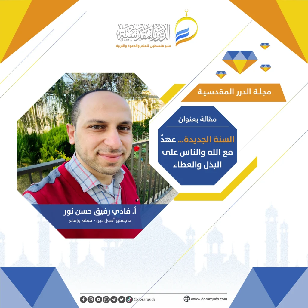 ثالثاً: العهد مع الله… هو العهد مع المظلوم لا يمكن لأمة ترجو النهضة أن تتجاهل آلامَ أبنائها، ولا يمكنُ لخطابٍ دينيٍّ أن ينعزلَ عن السياسة بينما القدس تُهوَّد، وغزة تُباد، والضفة تُستباح. فالقرآن ربط الإيمان بالعدل نصرةً ودفعاً، لا شعارات: ﴿يَا أَيُّهَا الَّذِينَ آمَنُوا كُونُوا قَوَّامِينَ بِالْقِسْطِ﴾ (سورة النساء: 135)، ﴿وَمَا لَكُمْ لَا تُقَاتِلُونَ فِي سَبِيلِ اللَّهِ وَالْمُسْتَضْعَفِينَ﴾ (سورة النساء: 75). العهد الحقيقي في السنة الجديدة هو أن يكون المرءُ جزءاً من جبهة الحق مهما صغر دوره؛ بالكلمة، بالوعي، بالموقف، بالصدقة، بالتعليم، بالتربية. فالمعركة ليست عسكرية فقط، بل معركة وعي وهوية وثبات.